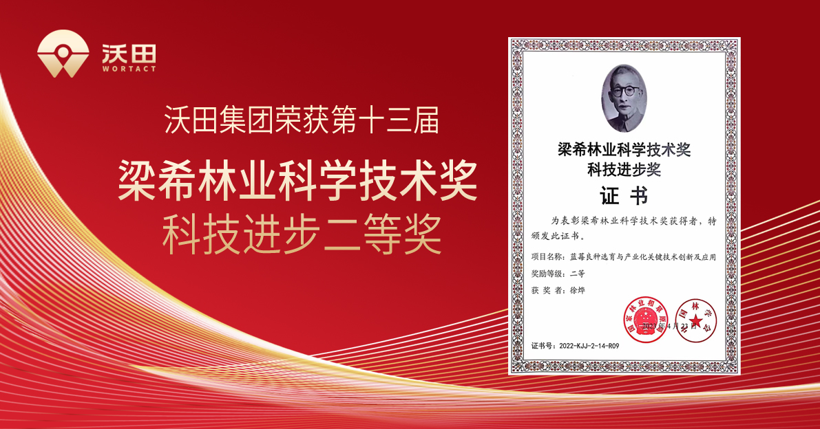 近日,根據中國林學會《關于第十三屆梁希林業科學技術獎評選結果的通報》(中林會學字〔2023〕23號),沃田集團《藍莓良種選育與產業化關鍵技術創新及應用》項目,榮獲第十三屆梁希林業科學技術獎科技進步二等獎。